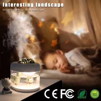 Wireless Starry Sky Humidifier & 360° Rotating Night Light Diffuser